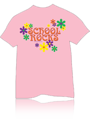 Our “New” School Rocks Design harkens back to the 1960’s Flower Power era. Printed on a Pink High Quality 50/50 Blend T-shirt. Available in Adult Small, Medium, Large, XLarge and XXLarge.